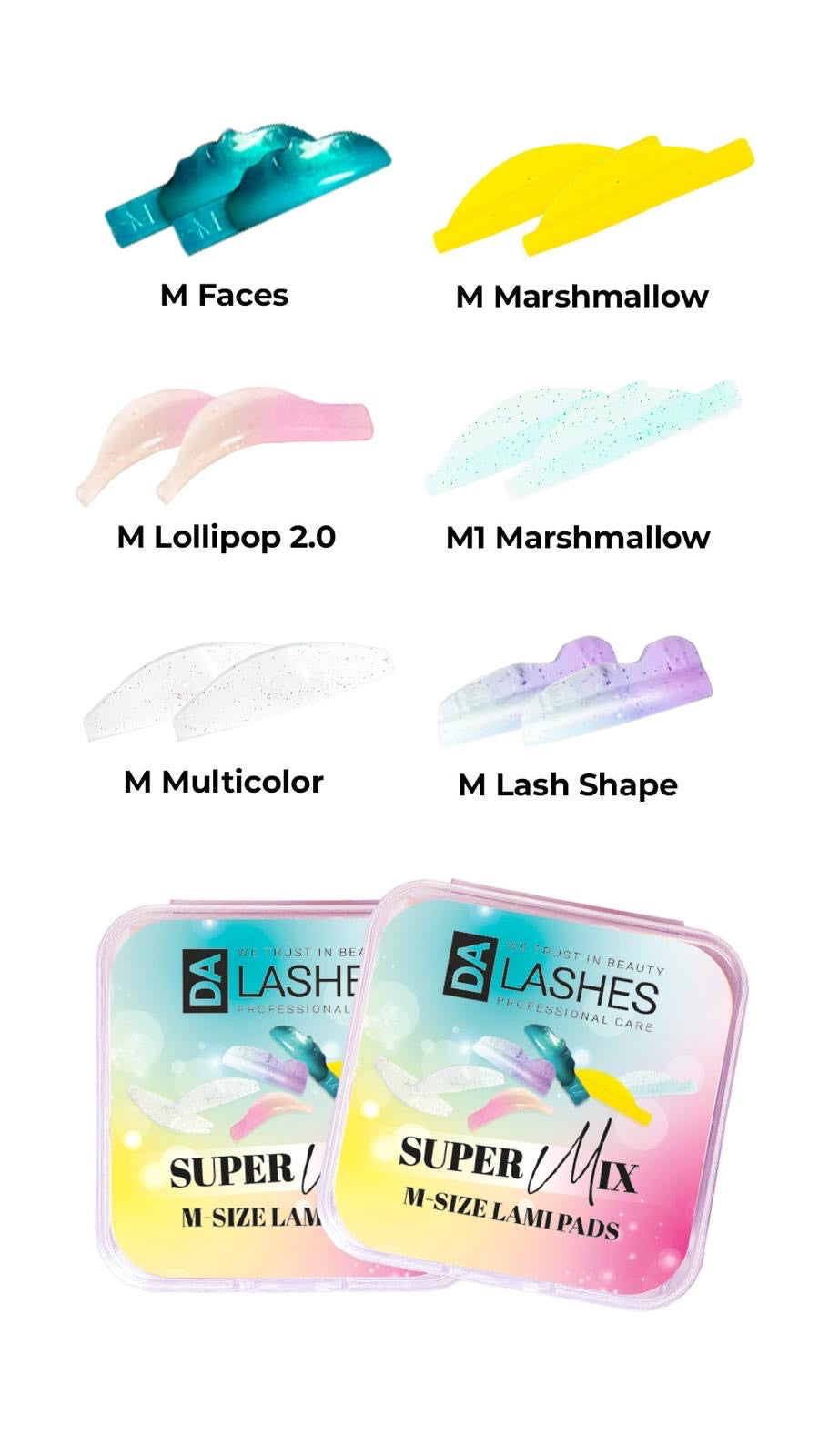 Rinkinyje: MULTICOLOR M, MARSMALLOW M ir M1 S, FACES M, Lollipop 2.0 M, Lash Shape M.